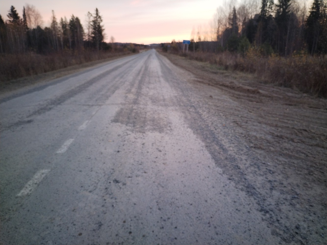 16.10.2025, с. Уват, Тюменская область. Объездная дорога. Грузовые авто вытаскивают грязь на дорожное полотно, тем самым снижают безопасность на данном участке дороги.