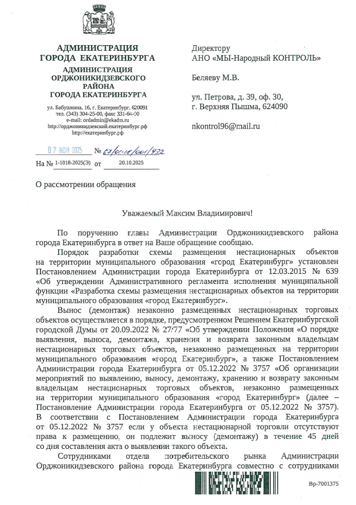 В октябре из Екатеринбурга поступило обращение от жителей города о недостатке остановочных павильонов на улице Восстания и других улицах Уралмаша. По информации заявителей, существующие укрытия не обеспечивают достаточной защиты пассажиров от осадков, а их количество недостаточно для комфортного ожидания транспорта.