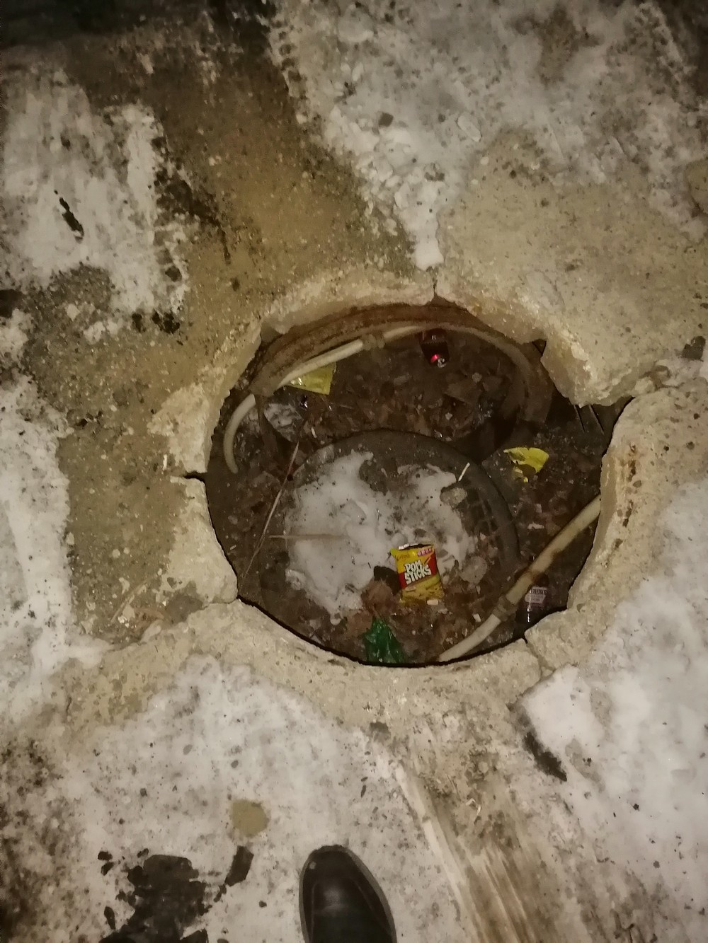 г. Находка, Приморский край. Между домами по ул. Гагарина, 10 и ул. Гагарина, 12 на проезжей части открыт люк, в который уже долгое время падает всё, что по ней движется.