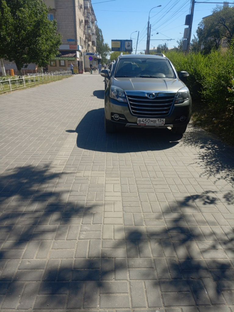 28.05.2025, Волгоград, ул. Ополченская, 8. На тротуаре возле поликлиники стоят машины.