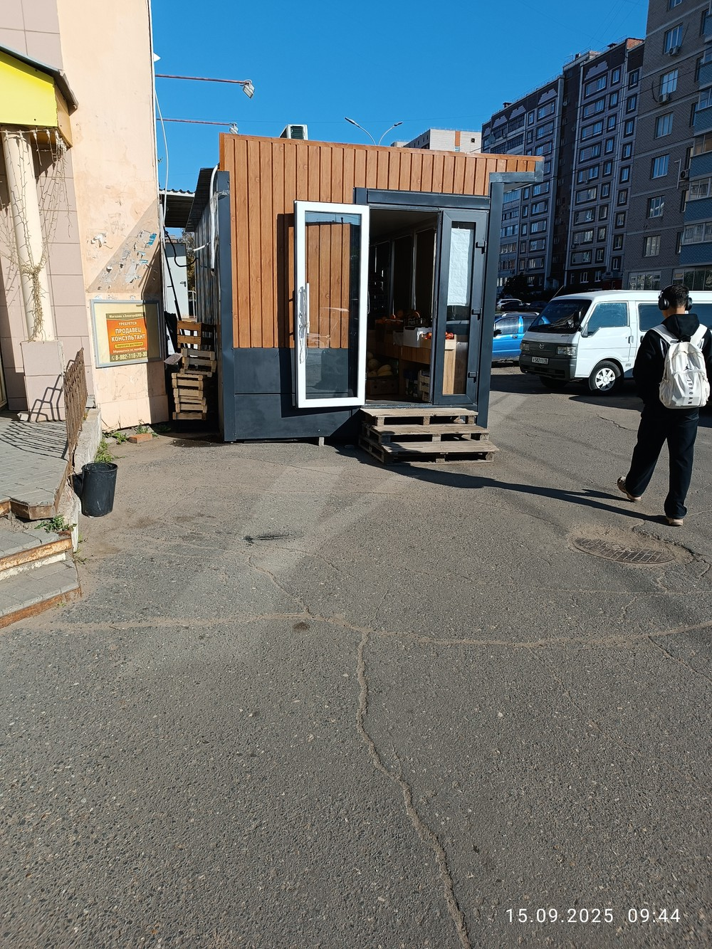 6) допускается хранение оборотной тары на прилегающей территории.Указанный нестационарный объект установлен с нарушениями минимальных пожарных расстояний между зданиями — вплотную к дому по адресу ул. Красноармейская, 71. В промежутке между строениями складируется горючая пустая тара, что создает угрозу жизни и здоровью неограниченного круга лиц.
