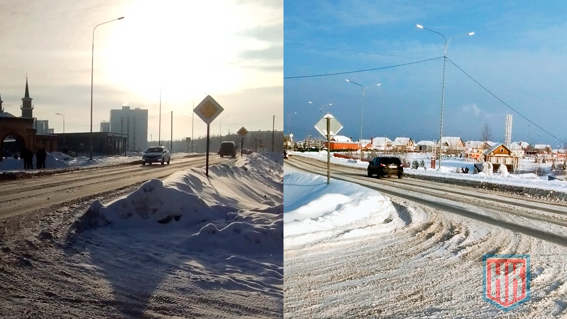 Снег на тротуаре по Латышских Стрелков в Казани остаётся неизменной бедой