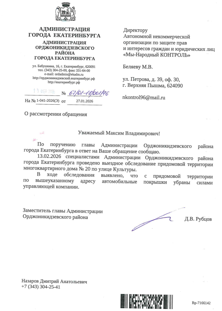 В конце января из Екатеринбурга было получено обращение от жителя дома №20 по улице Культуры. Заявитель сообщил, что на проезжей части со стороны двора складируется мусор, создавая препятствия для движения и антисанитарную обстановку.