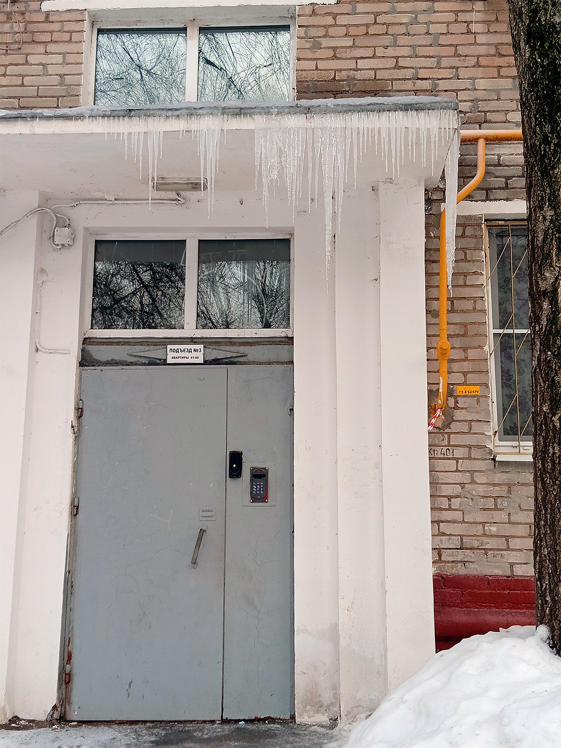 г. Москва, Большая Академическая, 23. Каждую зиму течёт вода с крыши над подъездом №3, образуются ледяные горы, что блокирует дверь подъезда. Нет возможности выйти пожилым людям (очень скользко) и с колясками. Также образуются сосульки на козырьке и на крыше. Снег и лёд не убираются вовремя — приходится оставлять по несколько заявок в управляющую компанию. После сбивают сосульки и иногда обрабатывают противогололёдным средством (не всегда). Проблема с водой с крыши не решается из года в год. Вода течёт не потому, что тает снег. Просьба помочь решить проблему!