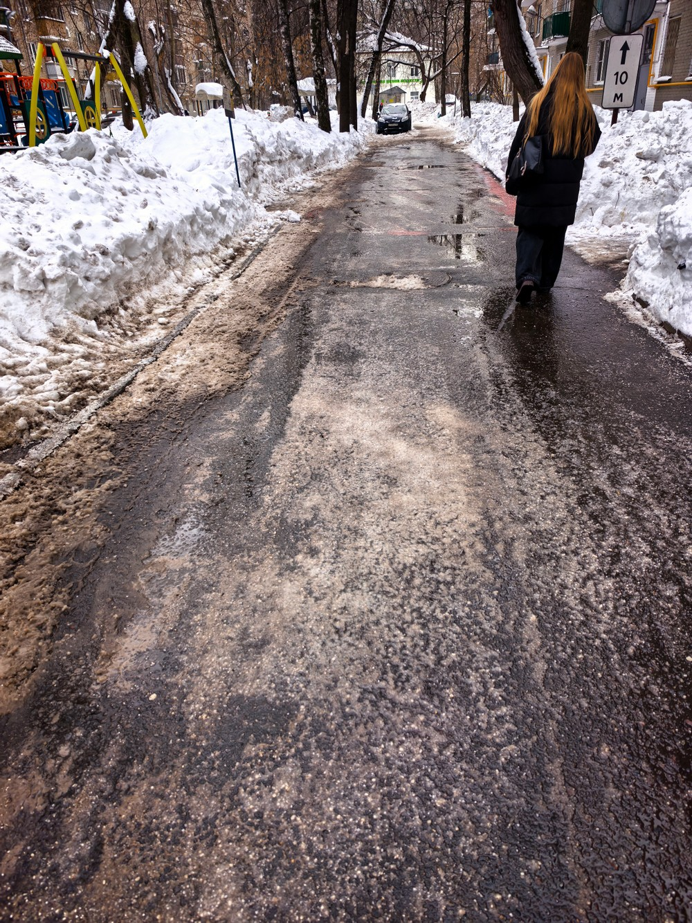 В Москве жители жалуются на перебор с реагентами во дворе на Амундсена