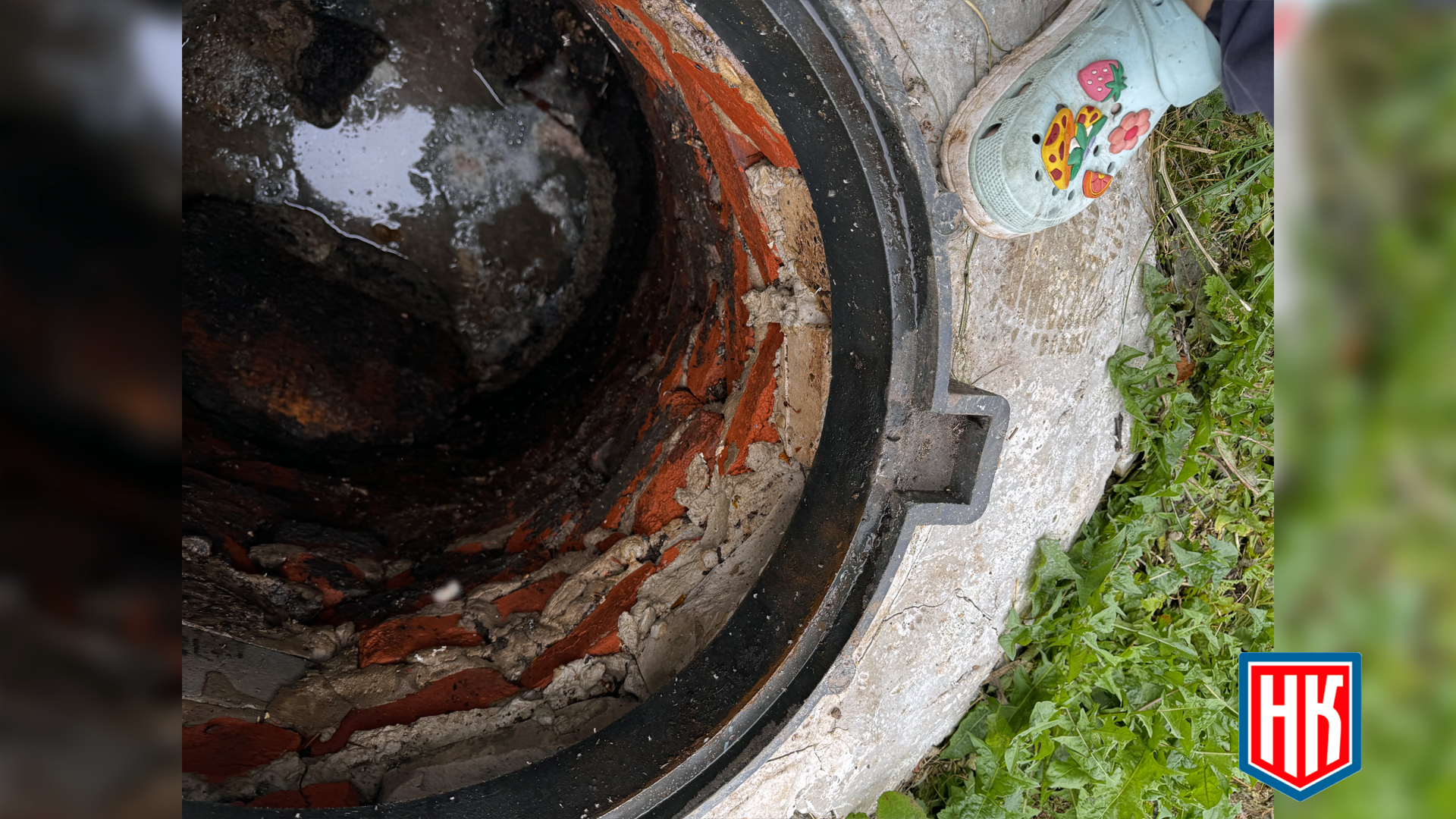 Канализационный люк по данному дому отметил своё 40-летие. Люк кирпичный. Кирпичи опадают на дно.