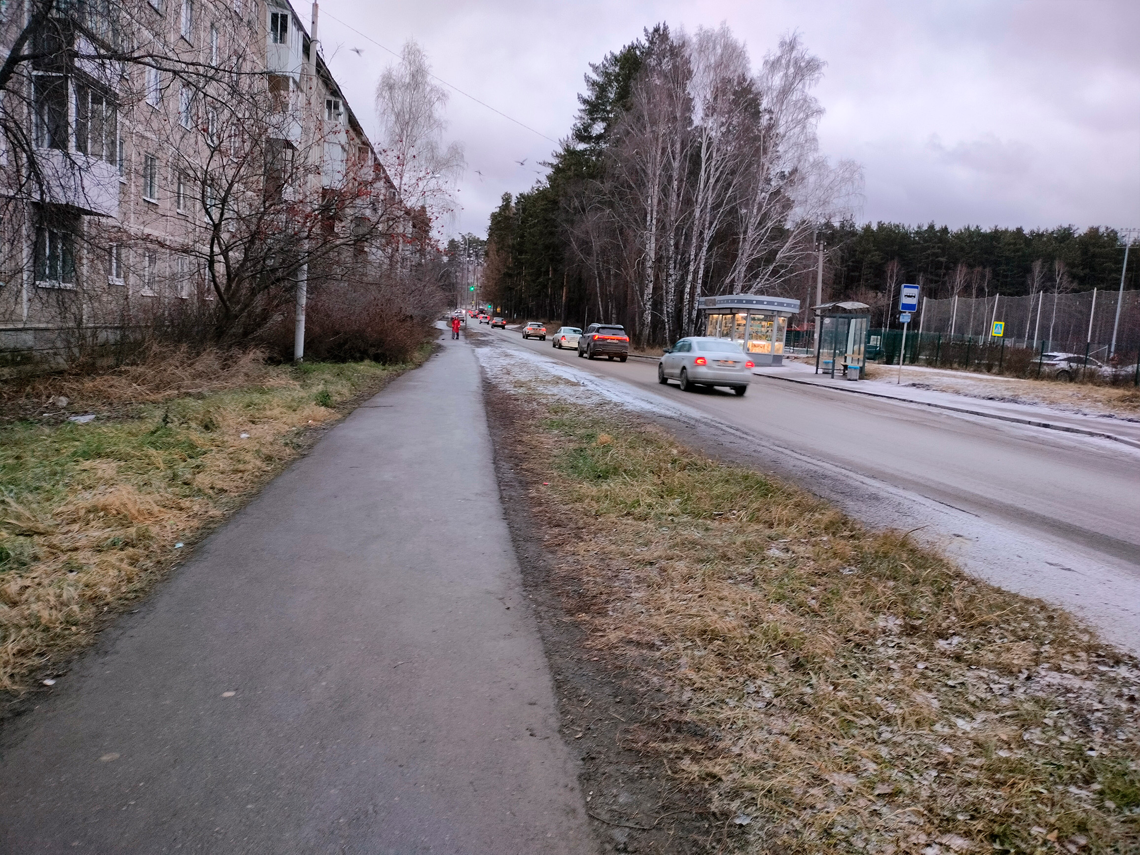 Микрорайон Компрессорный, Екатеринбург. Нет ограждения тротуара центральной дороги возле дома по ул. Латвийская, 36. По данному тротуару дети идут в школу, машины иногда идут на обгон, дети иногда толкаются друг с другом, а в метре от тротуара идет дорога, очень небезопасно.